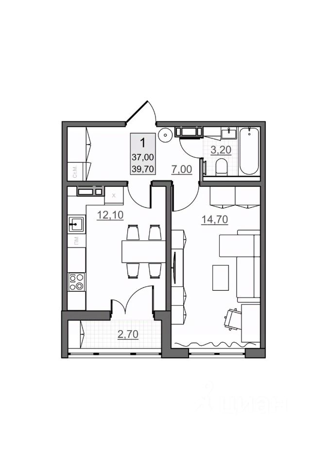 Общая площадь37 м²