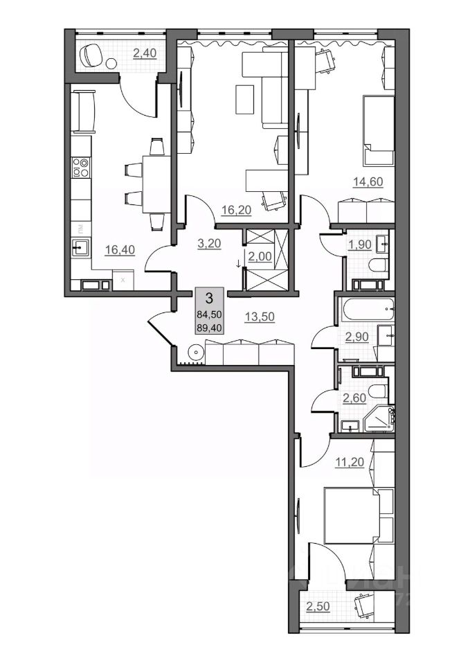 Общая площадь84,5 м²