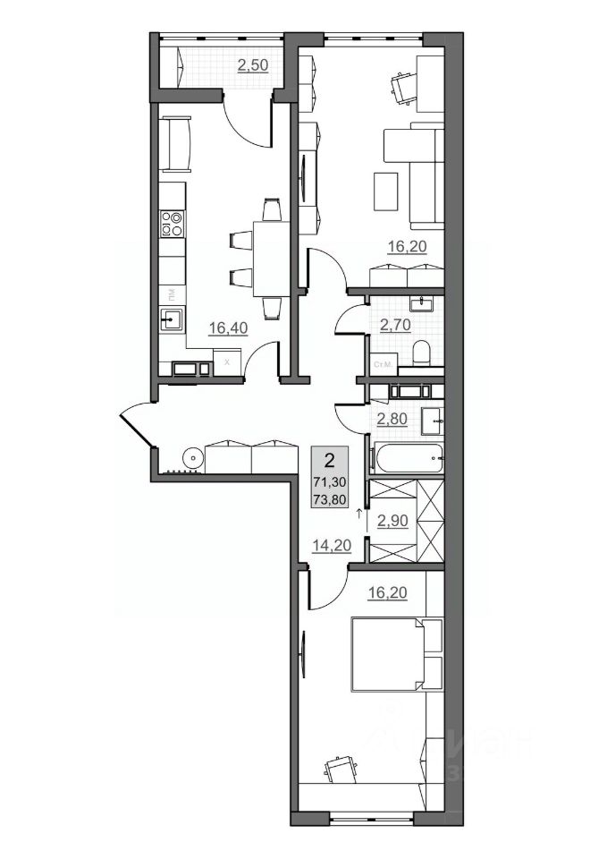 Общая площадь71,3 м²