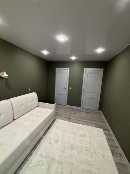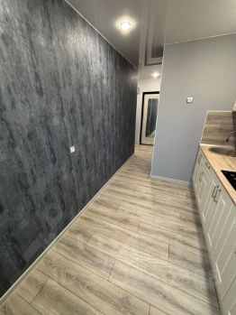 В квартире выполнен хороший ремонт, в мягких тонах, со вкусом. Заменены все коммуникации (электрика, вода, отопление, канализация). Потолок натяжной с точечным освещением, ламинат 33 класс, в ванной плитка и керамогранит, хорошая сантехника. Все абсолютно новое. Встроенная кухня. Красивые обои . Все что на фото остается покупателям. Квартира просторная, уютная и очень теплая.