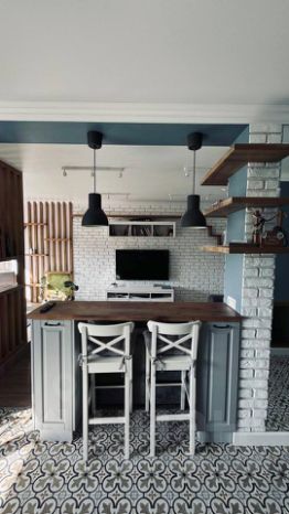 Планировка удобная: большая кухня и гостиная с барной стойкой-столом, где приятно пить утренний кофе. Лоджия присоединена к квартире и утеплена — получилась отличная зона для отдыха или работы, откуда открывается потрясающий панорамный вид на лес. В спальне сделан подиум для кровати с местом для хранения, и оттуда тоже можно любоваться природой. Высокие потолки — 2,6 метра, много солнца, но благодаря ориентации окон на северо-запад, летом в квартире не бывает жарко из-за хорошей вентиляции и продуманной планировке. Зимой тепло, во-первых потому что у дома своя котельная, которая запускается когда жители этого захотели, а не город. А во-вторых, потому что все этажи ниже начинают отапливаться и все тепло идет наверх. На батареях стоят регуляторы температуры, благодаря которым можно самтостоятельно определить какая должна быть температура в квартире. На отоплении, как и на водоснабжении - стоят индивидуальнып счетчики.