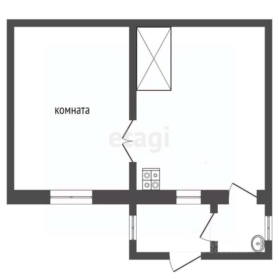 В квартире просторная комната и кухня, отопление форсунка. Общая площадь 44,9 кв.м.