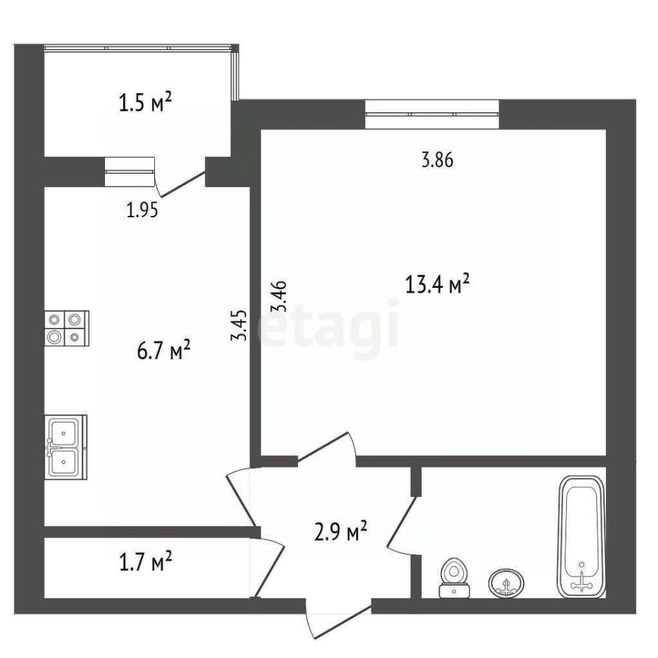 - Площадь: 27.7 кв.м.