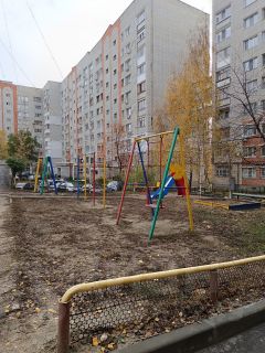 Территория двора ухоженная, летом уложили новый асфальт, оборудованы 2 детские площадки, спортивная площадка, высажены цветы, кустарники.