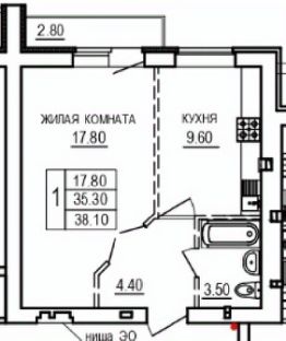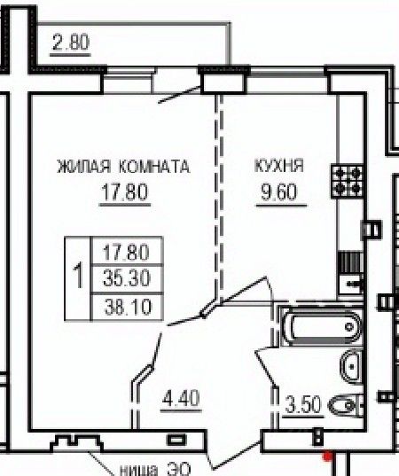 Общая площадь38,1 м²
