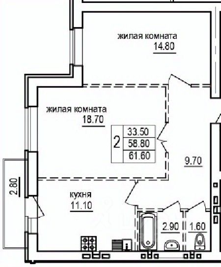 61,6 м²