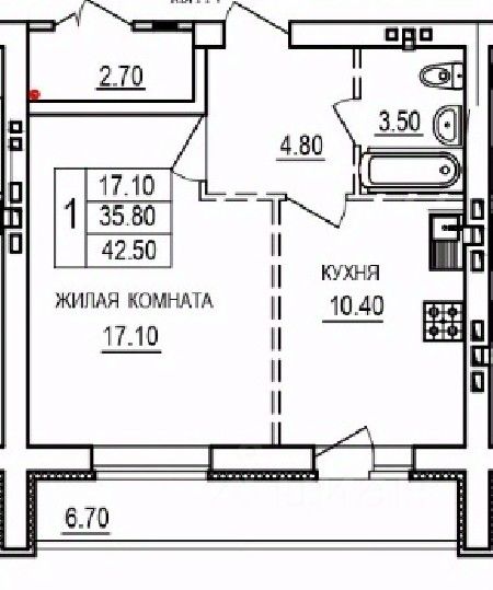 Общая площадь42,5 м²