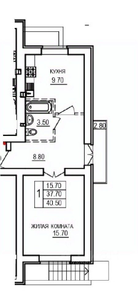 Общая площадь40,5 м²