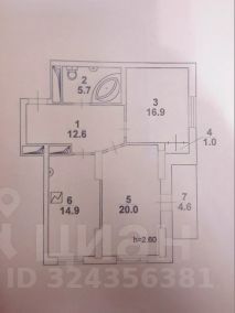 Общая площадь квартиры — 74.3 кв.м. Удобная планировка: раздельные комнаты — 16.9 и 20 кв. м, кухня — 14.9 кв. м; санузел совмещённый, лоджия застеклённая.