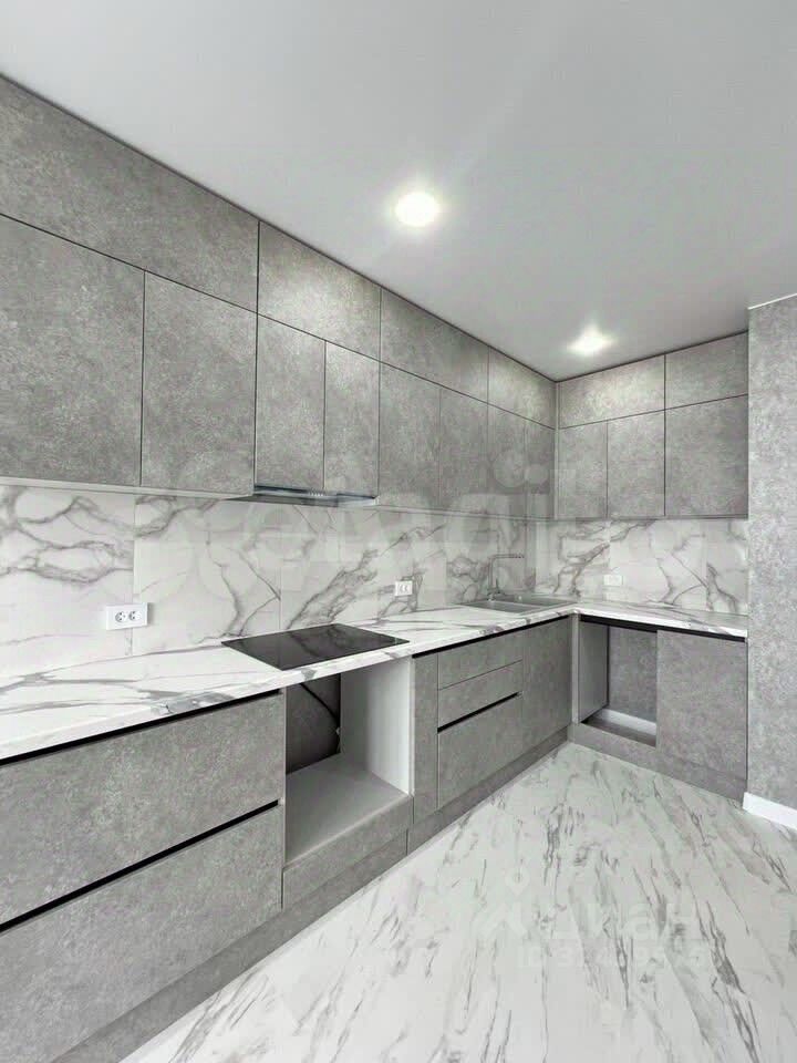 Кухня-гостиная: Установлен кухонный гарнитур, техника подключена (электропанель, вытяжка). Готовые места для встройки холодильника, духовки и посудомоечной машины.