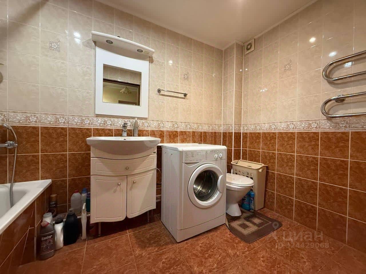 Просторный совмещенный санузел, стиральная машина.