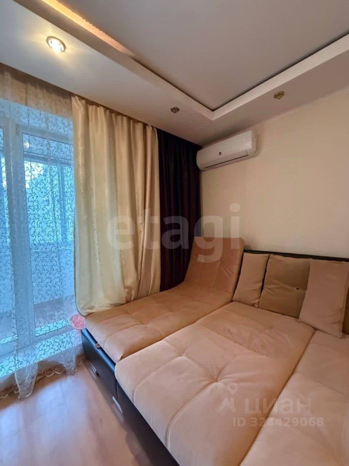 В квартире выполнен косметический ремонт, есть мебель и техника, которая останется новому владельцу. Площадь квартиры составляет 53 м2, что дает ощущение свободы и пространства. Из комнаты выход на большую, застекленную лоджию, которая выходит во двор. В комнате установлена сплит-система, остается телевизор ,большой диван и оборудована зона хранения.