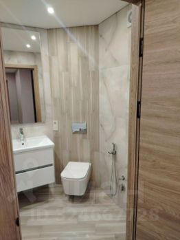 Прихожая и санузел: Вместительный шкаф, тумба с зеркалом, подвесная сантехника (инсталляция).