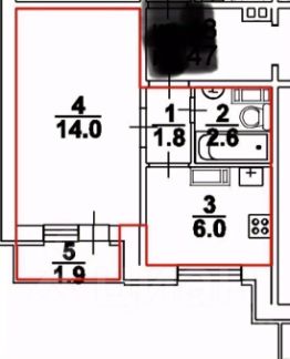 Общая площадь: 24.4 м (жилая 14 м)