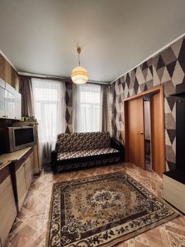 Комната находится в хорошем состоянии и состоит из двух смежных помещений, что позволяет удобно зонировать пространство — например, организовать отдельную зону отдыха и рабочую или спальную часть. Часть мебели остаётся новым владельцам.