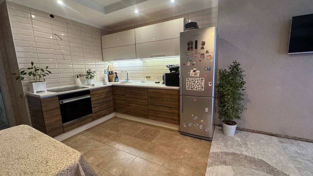 Выполнен современный ремонт из дорогостоящих строительных и отделочных материалов- не требует дополнительных вложений. Кухня выполнена из испанского пластика со встраиваемой техникой, бельгийские и итальянские обои в комнатах и декоративная штукатурка ручной работы в коридоре. Ремонт в спальне обновлен менее 2-х месяцев назад. В ЖК своя собственная котельная- очень экономные коммунальные платежи (не более 5000 руб/мес)!