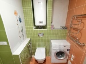 Совмещенный сан.узел: импортные ванна с гидромассажем и сан.прибор на инсталляции, крышка -сиденье с микролифтом, отделка коллекционной плиткой, стиральная машинка, водонагреватель, теплые полы.