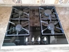 Изначально, во время капитального ремонта квартиры (с момента сдачи дома помещение было в одних руках), особое внимание было уделено не только отделке стен и пола, но и электрике под: систему освещения во всем помещении, ТВ и домашний кинотеатр, интернет, систему кондиционирования в зале и зоне кухни и др.
