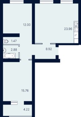 2-комн. квартира, 69,21 м²