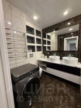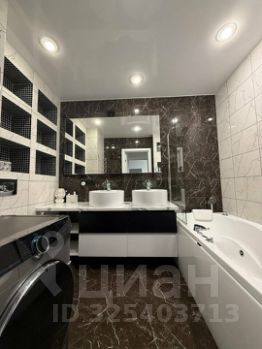 В совмещенном санузле джакузи с гидромассажем - ваш личный оазис релаксации, двумя раковинами, большими зеркалами с подсветкой, множеством полочек для косметических средств, полотенец и других принадлежностей.