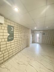 Стены оштукатурены, произведена стяжка пола, постелен линолеум, установлены натяжные потолки и качественные двери.