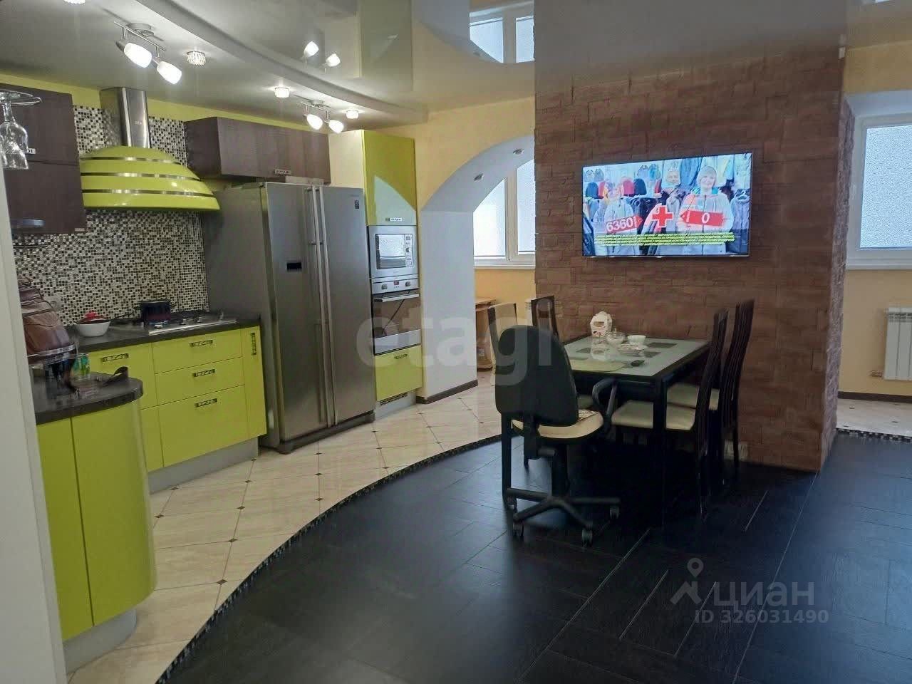 Кухня- гостиная объединена с лоджией имеет площадь 31 кв. метр , оборудована современным кухонным гарнитуром с встроенной бытовой техникой.