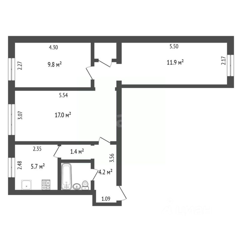 5,7 м²