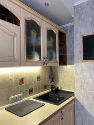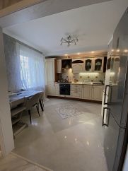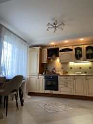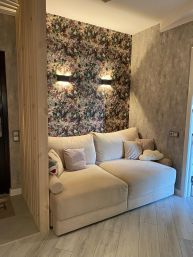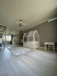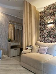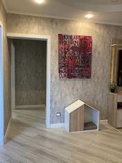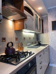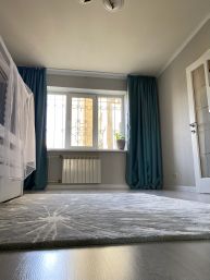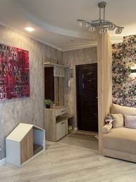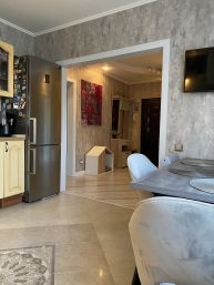 Хороший ремонт. Из прихожей 12м2 сделана гостиная с реечным зонированием. Просторная и светлая кухня с размещением посудомоечной машины на 60, дорогой мебелеровкой и грамотно разведенной электрикой. Жалюзи на окнах.