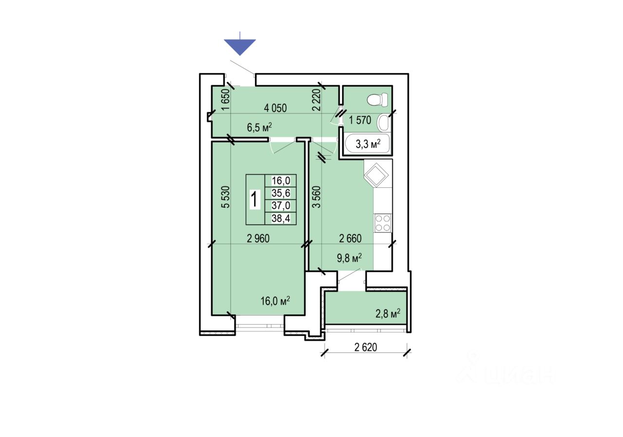 Общая площадь38,4 м²
