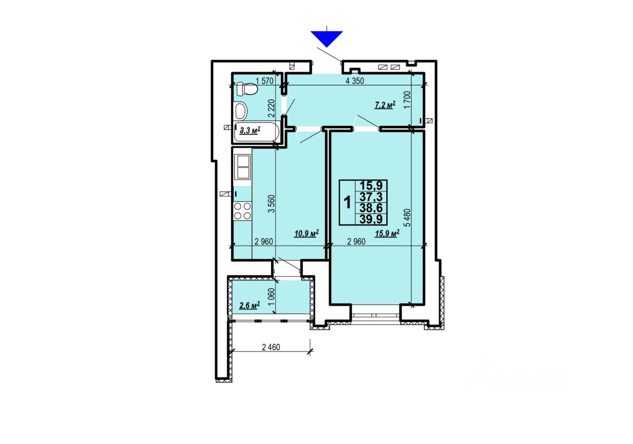 Общая площадь39,9 м²
