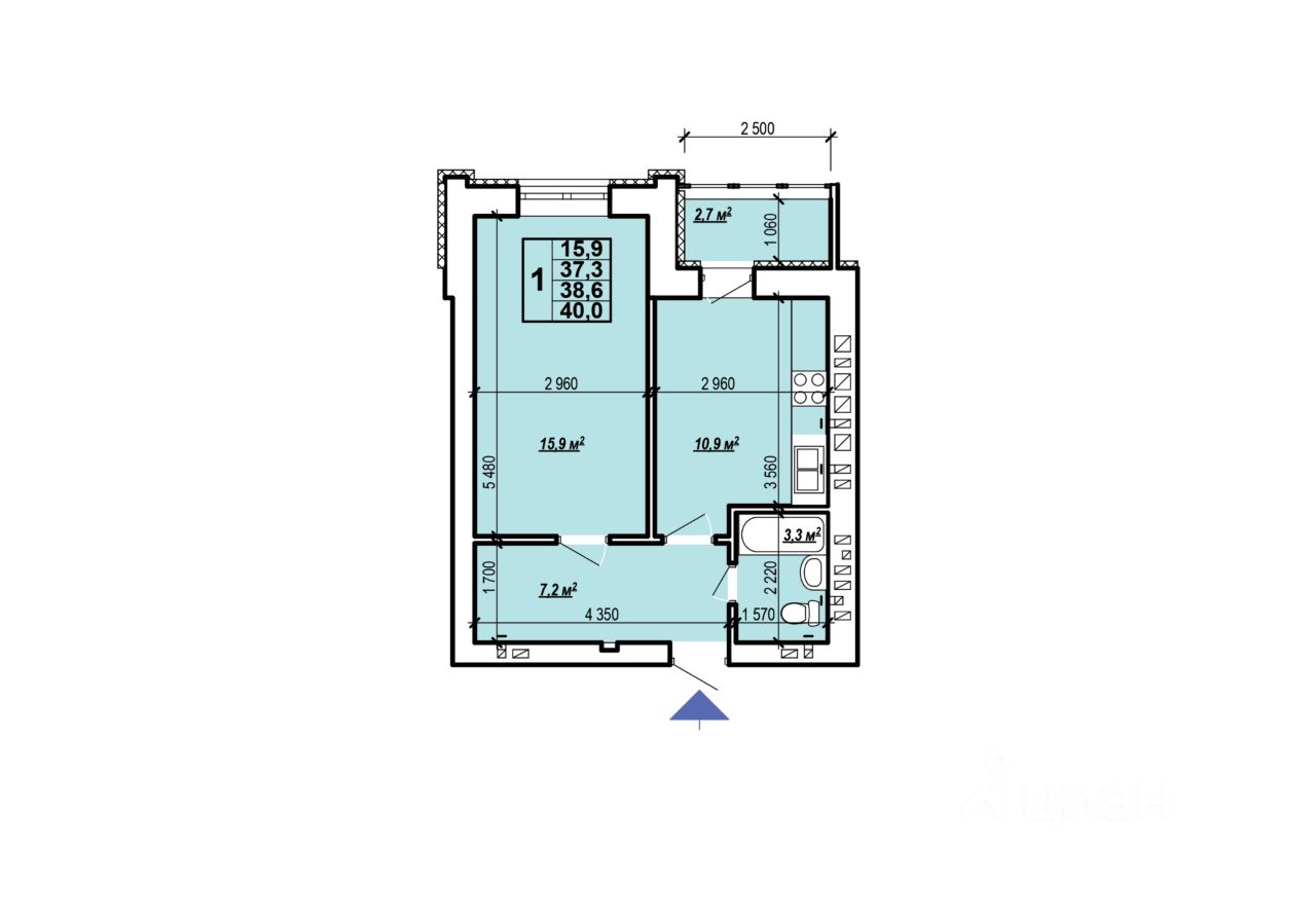 Общая площадь40 м²