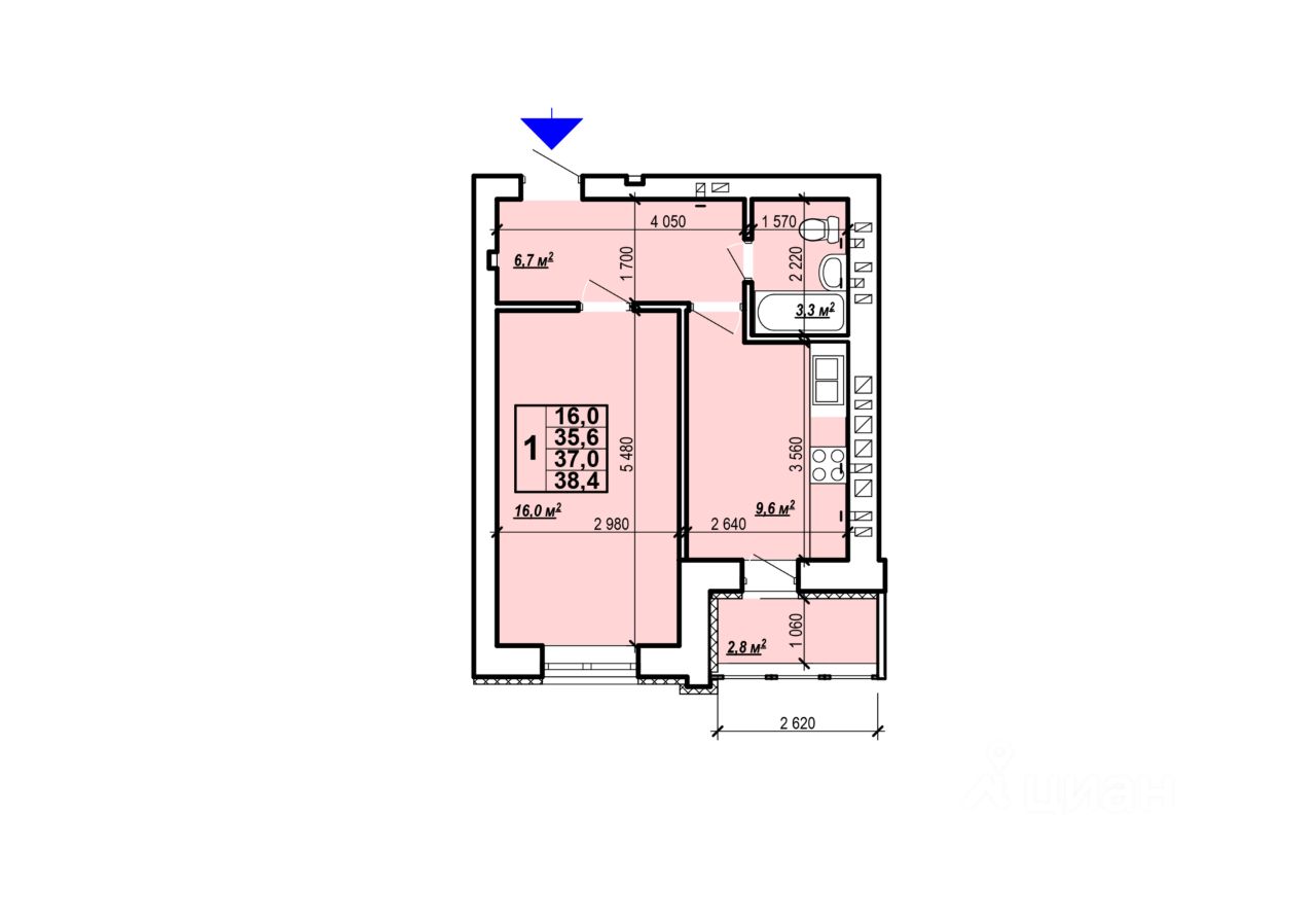 Общая площадь38,4 м²