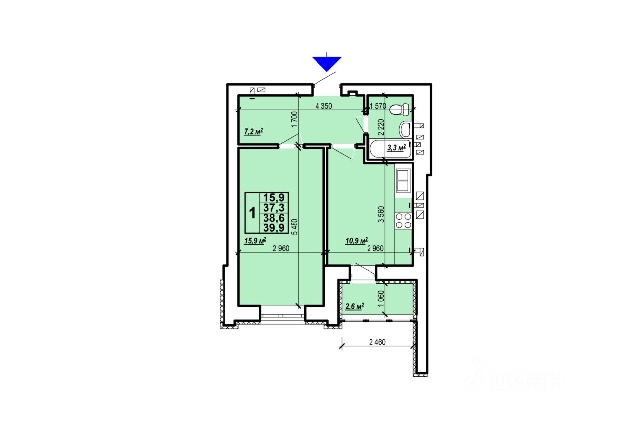 Общая площадь39,9 м²