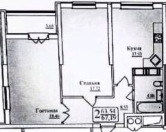 Просторная планировка на две стороны, площадью около 64 кв.м. (с учетом лоджии).