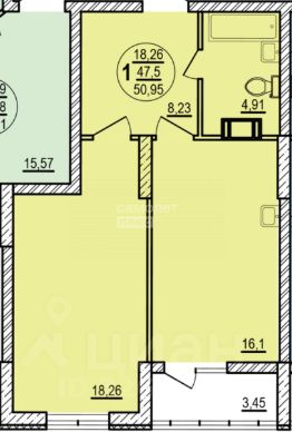 Общая площадь 50,95 кв.м. Кухня более 16кв.м , что позволит сделать кухню-гостиную и превратить данную квартиру в евродвушку!