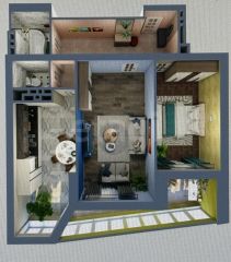 - В квартире выполнена стяжка пола, оштукатурены стены, разведены инженерные коммуникации (электрика и водопровод), утеплена и остеклена лоджия. Это позволяет минимизировать затраты и время на финишную отделку, выбрав любые материалы и стиль.