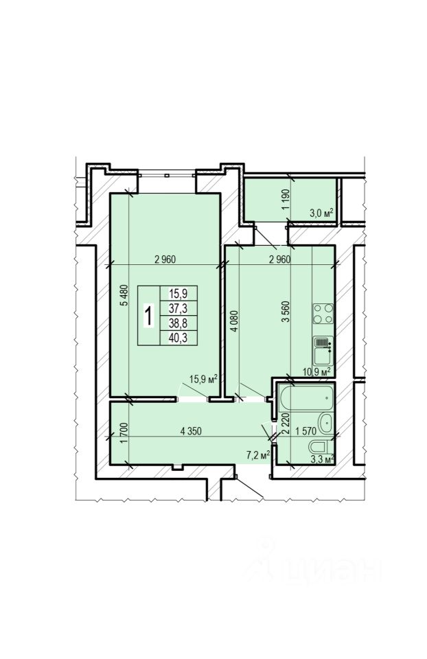 Общая площадь40,3 м²
