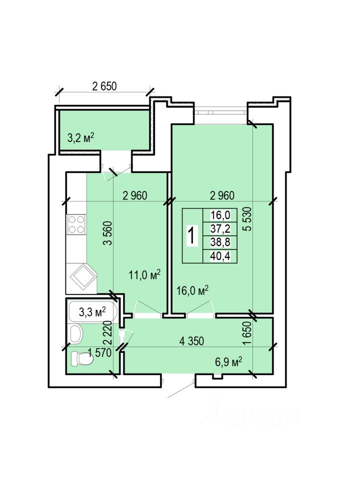 Общая площадь40,4 м²