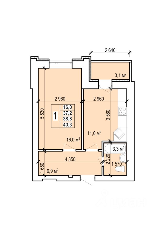 Общая площадь40,3 м²