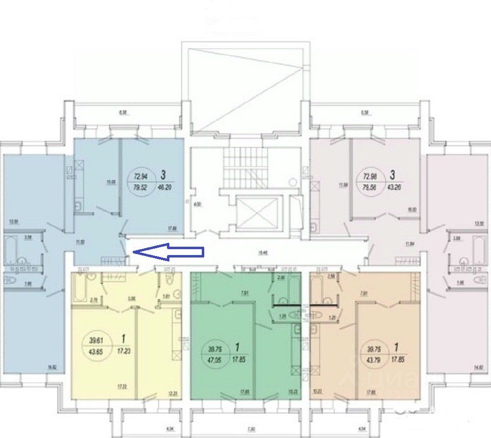 Общая площадь — 72,3 м2 + лоджия (7 м2);