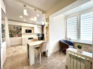 В квартире выполнен современный ремонт с использованием только качественных материалов, интерьер обставлен хорошей мебьлью и техникой, квартира готова для проживания в первый день покупки.