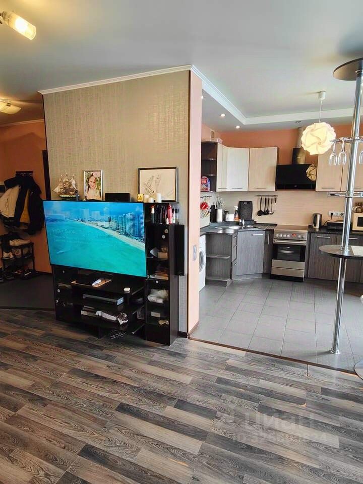 Расположена на 14-м этаже современного 23-этажного монолитно-кирпичного дома.
