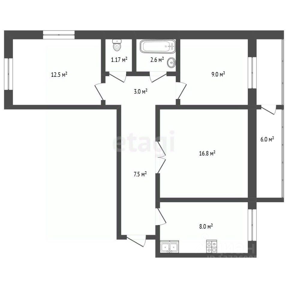— Встроенная техника: холодильник, варочная панель, посудомоечная машина, вытяжка, система доводчиков на дверях