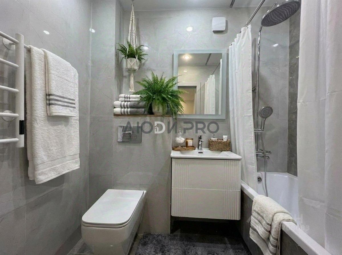 Совмещенный санузел оформлен с европейским подходом: удобная инсталляция, стильный тропический душ и уютная акриловая ванная. Керамогранит на полу и внутренняя отделка лоджии - помогут поддерживать чистоту вашей одежды. Остекленная лоджия с освещением — станет вашим личный уютным уголком.