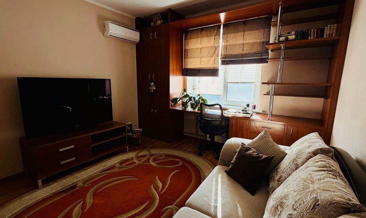 Отделка. В комнате выполнен качественный косметический ремонт, который позволяет заехать и проживать сразу после приобретения, установлена мягкая и корпусная мебель, сплит-система. Квартира в отличном состоянии, установлен кухонный гарнитур фабрики "Мария", санузел раздельный, отделан современной плиткой, установлена надежная сантехника.