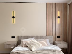 - На полу во всех комнатах уложен ламинат 33 класса (толщина 12 мм). В каждой комнате продуманы несколько сценариев освещения.