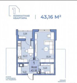 Очень удобная и функциональная планировка общая площадь квартиры: 43,16 кв.м с учетом лоджии (без лоджии 39,82).