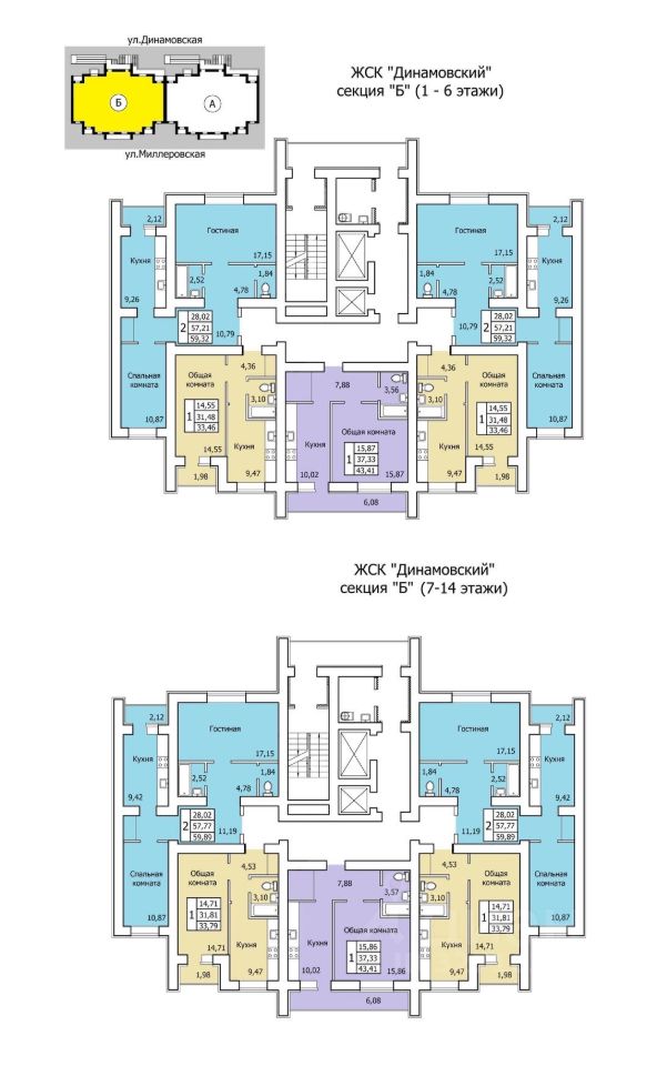 Просторная 1 комнатная квартира 43,41 кв.м, в новом ЖК Динамовский. Отличный вид.