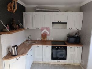 -Кухня 8 кв м ( с выходом на лоджию 2,7 кв м) с новым гарнитуром: белые фасады, деревянные шкафы, встроенная техника. Готовьте, как в ресторане!