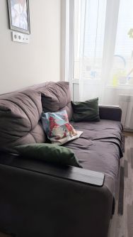Идеальная квартира для пары или студента, рядом есть детский сад, школа, колледж, напротив студгородок, 10 минут до Триумфа. Кухня- гостиная оборудована современной техникой,оставляем все : холодильник, микроволновку, чайник, тостер,посуду. Стол раскладывается. Оставляем стулья, которые на фото и на балконе есть еще два стула. В комнате установлен кондиционер. В прихожей большой шкаф, где есть отдельные полки для обуви. В ванной есть боллер, стиральная машинка, корзина для хранения белья. Из окон открывается вид на улицу, что обеспечивает хорошее естественное освещение.